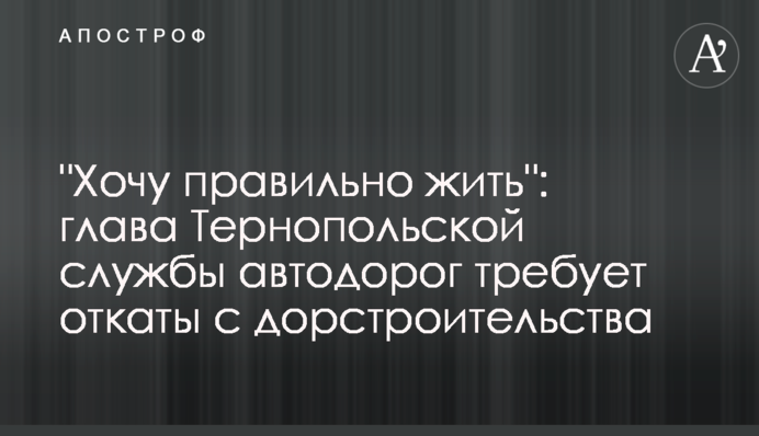 Начальник Тернопільської служби автомобільних доріг Ігор Раїнчук "хоче жити правильно" і для цього йому потрібен 1% від вартості робіт і послуг по дорожньому будівництву в регіоні.