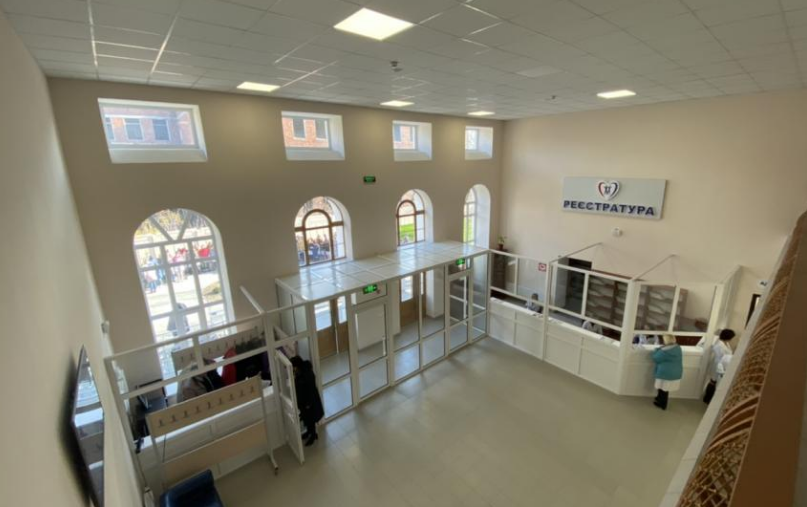 Частина будівлі, в якій розташована установа, була побудована в 1904 році. Друга частина добудована в 1960-х роках, але також вже прийшла в непридатний стан, оскільки будівля ніколи капітально не ремонтували. У поліклініці, яка обслуговує від 600 до 900 пацієнтів на день, навіть не було санвузла - він знаходився на подвір'ї закладу. У 2017 році з ініціативи підтримки голови Харківської області Юлії Світличної з обласного бюджету було виділено кошти на відновлення поліклініки та лікарні. До фінансування приєдналися також місцевий бюджет і міжнародні партнери - німецька організація GIZ.