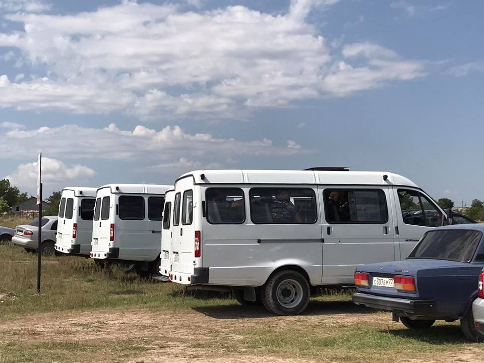 На фотографіях видно, що на місце інциденту прибули кілька автобусів з так званими поліцейськими, деякі з яких приховують обличчя масками.