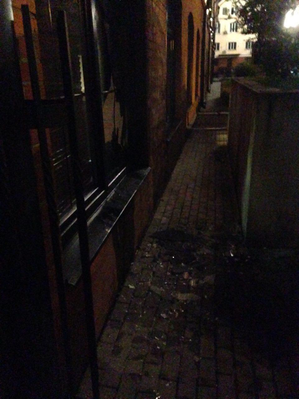 Зловмисники влаштували підпал, а також розбили скло і розмалювали стіни корпусу на Данилівській мануфактурі нацистською символікою, в тому числі свастикою і сонячним хрестом. На стінах також з'явилися написи: "Брешеш Лента".