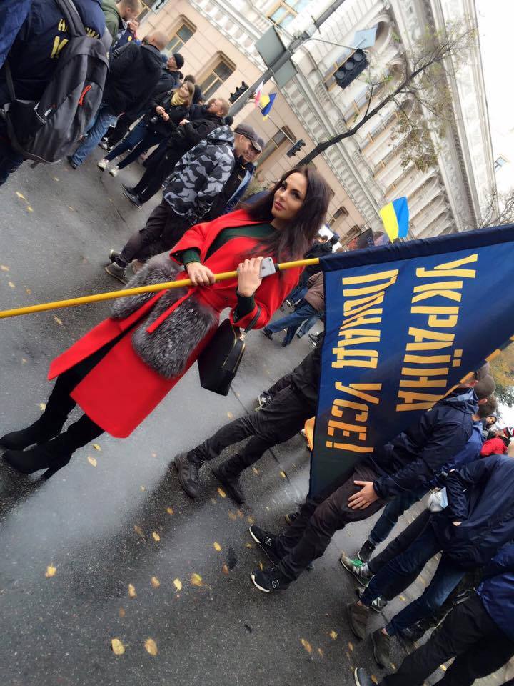 Користувачі соціальних мереж помітили серед учасників акцій протесту під стінами Верховної Ради 17 жовтня колоритну дівчину, "що працює" відьмою на проекті "Битва екстрасенсів".