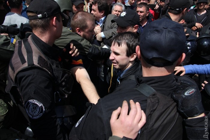 Проукраїнські активісти відібрали у "куліковців" прапор із зображенням палаючого Будинку профспілок, який ті принесли до пам'ятника Невідомому матросу. Між активістами сталося зіткнення. У ситуацію втрутилися силовики. Повідомляється, що в результаті сутички ніхто серйозно не постраждав.