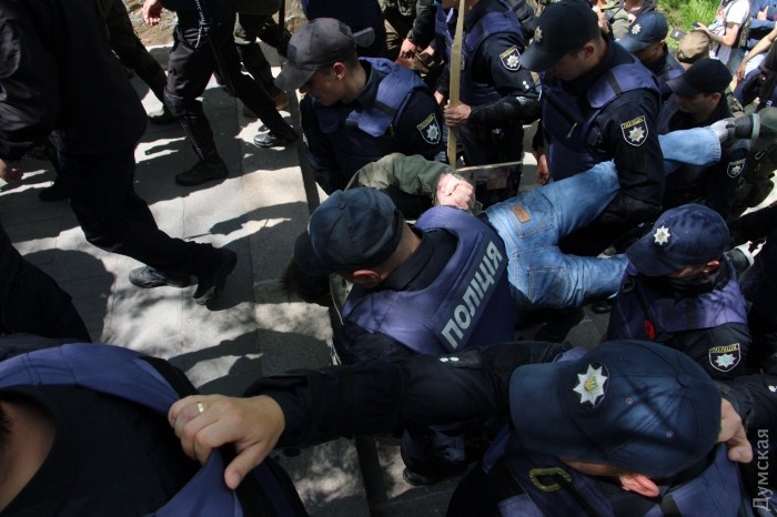 У головному управлінні Нацполіції в Одеській області повідомили про зіткнення між групами людей з різними політичними поглядами. Для з'ясування обставини в Приморський відділ поліції доставили жінку та 16-річного хлопця, а також ще двох людей, які використовували заборонену символіку.