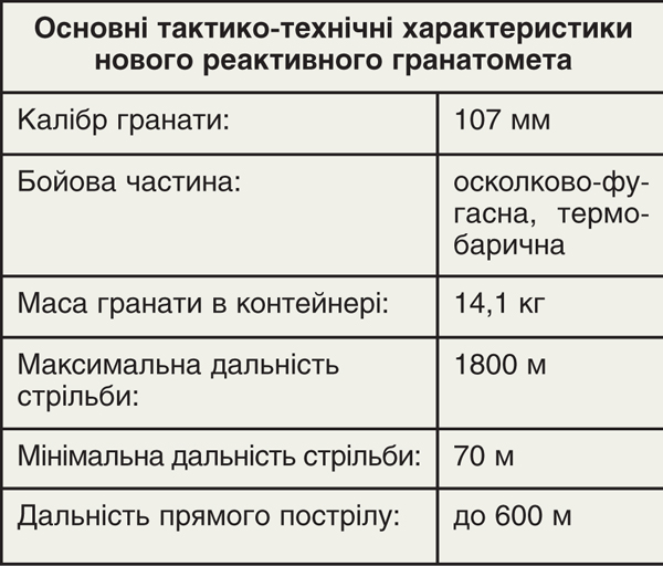 Новий гранатомет призначений для ураження легкоброньованої та неброньованої техніки, споруд польового типу живої сили, а також споруд з каменю, цегли або бетону.