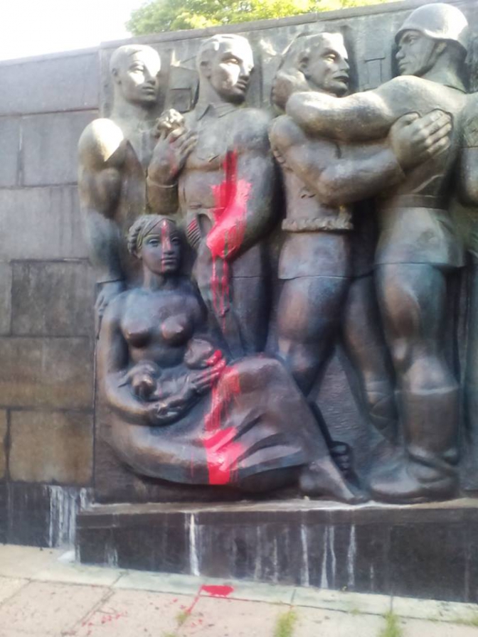 У Львові вандали облили червоною фарбою Монумент слави радянської армії на вулиці Стрийській біля Академії сухопутних військ.