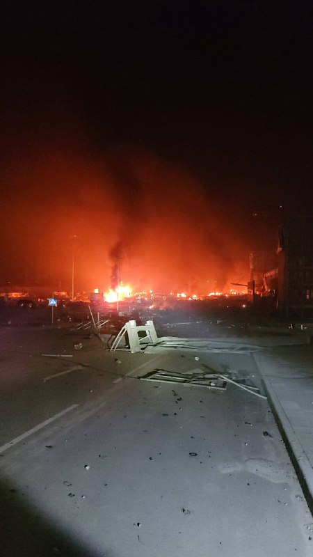 23:21. попередньо житлові будинки не постраждали від вибухів. Але снаряд упав один з ТРЦ столиці.