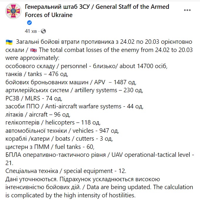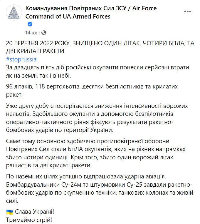 00:43. зведення Генштабу за 20 березня