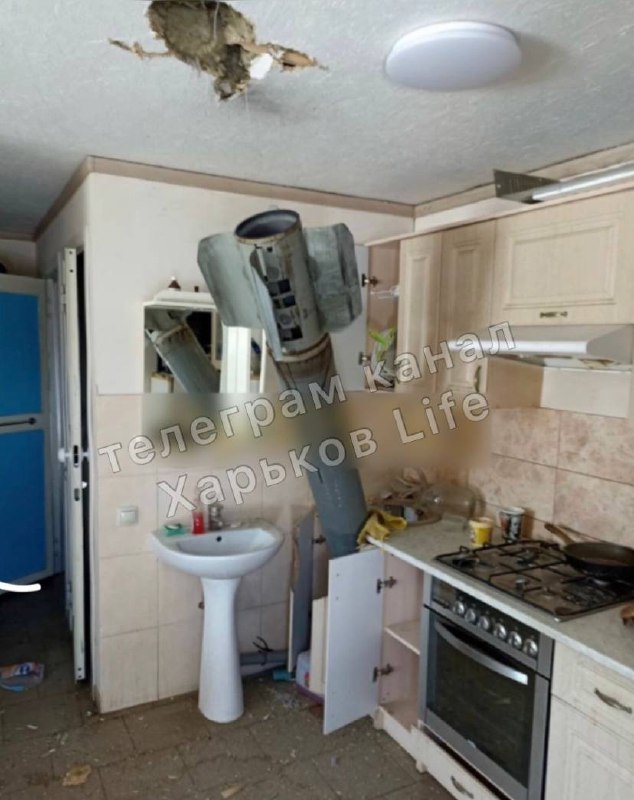 12:33. у місті Дергачі на Харківщині снаряд прилетів на кухню квартири і застряг в меблях.