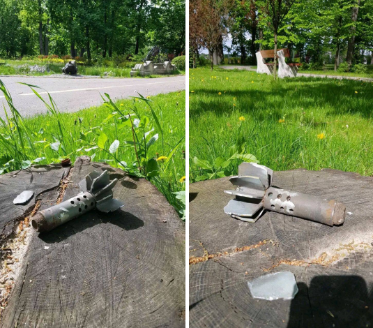 14:38 Міський парк у Бучі. Ось такі "подарунки" продовжують знаходити на звільнених територіях.