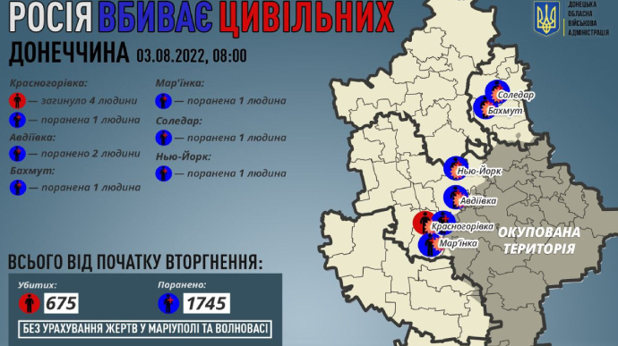 09:32 Протягом 2 серпня російські окупанти вбили 4 мирних жителів Донеччини у Красногорівці.