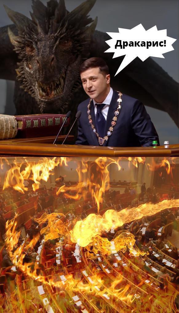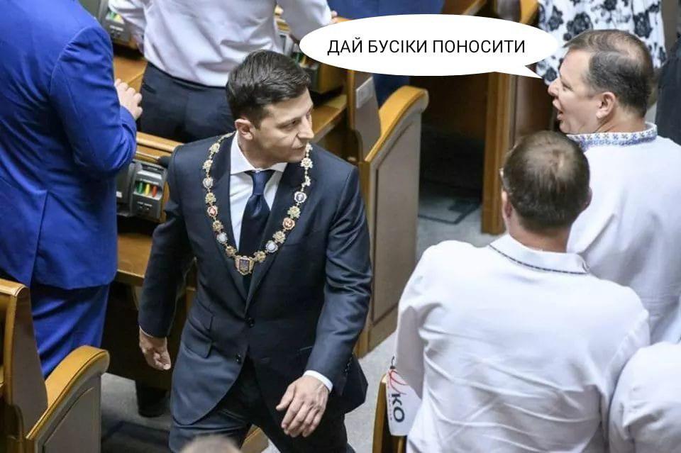 Зокрема кумедні картинки присвячені цікавим моментам під час інавгурації. На них зображені сам Зеленський, п"ятий президент України Петро Порошенко, третій президент Андрій Ющенко, президент-утікач Віктор Янукович, а також депутати Верховної Ради.