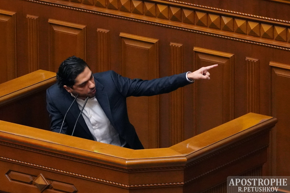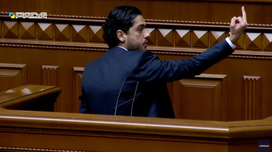 Свій виступ на трибуні він закінчив, показавши Зеленському середній палець. Президент ніяк не відреагував на висловлювання та жести нардепа.