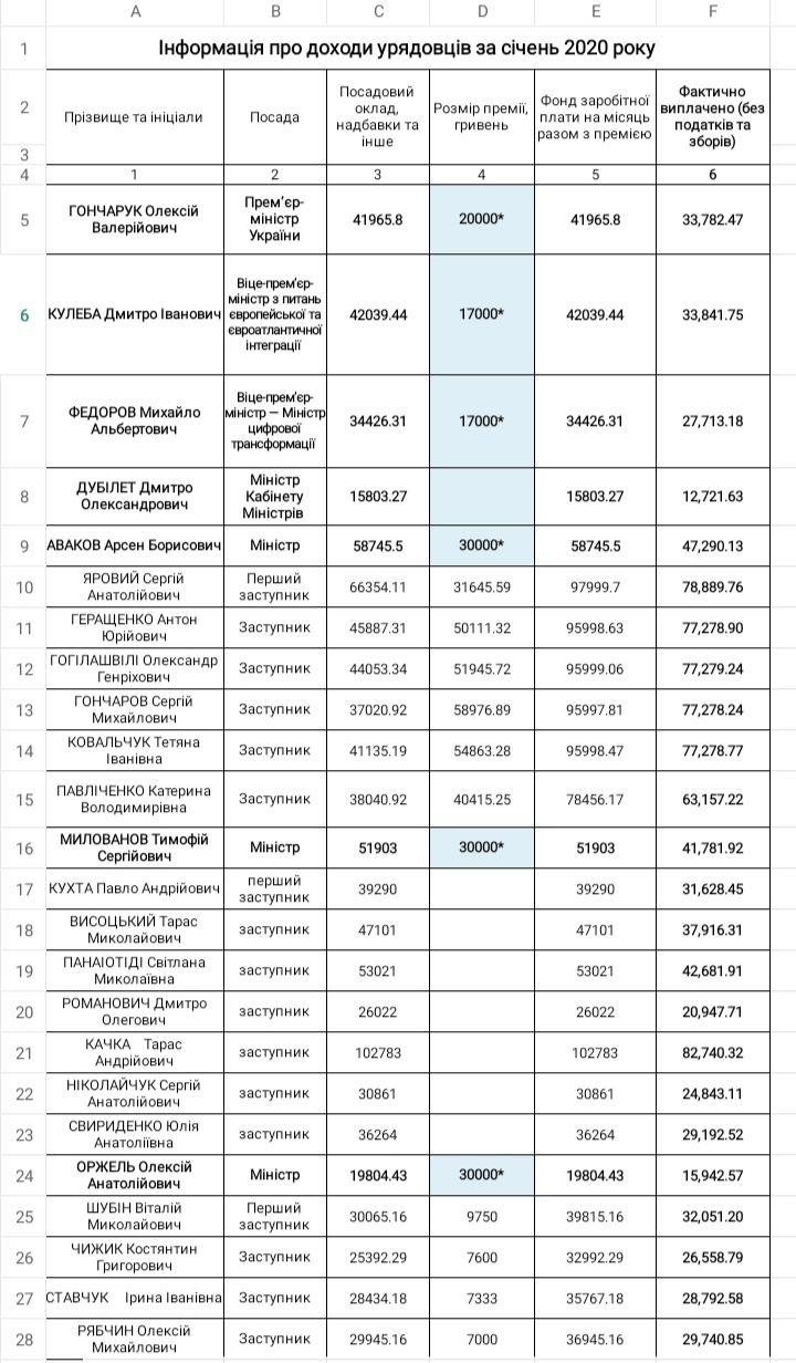 Так, на сайті Кабміну з'явилася інформація про те, скільки заробили чиновники в січні.
