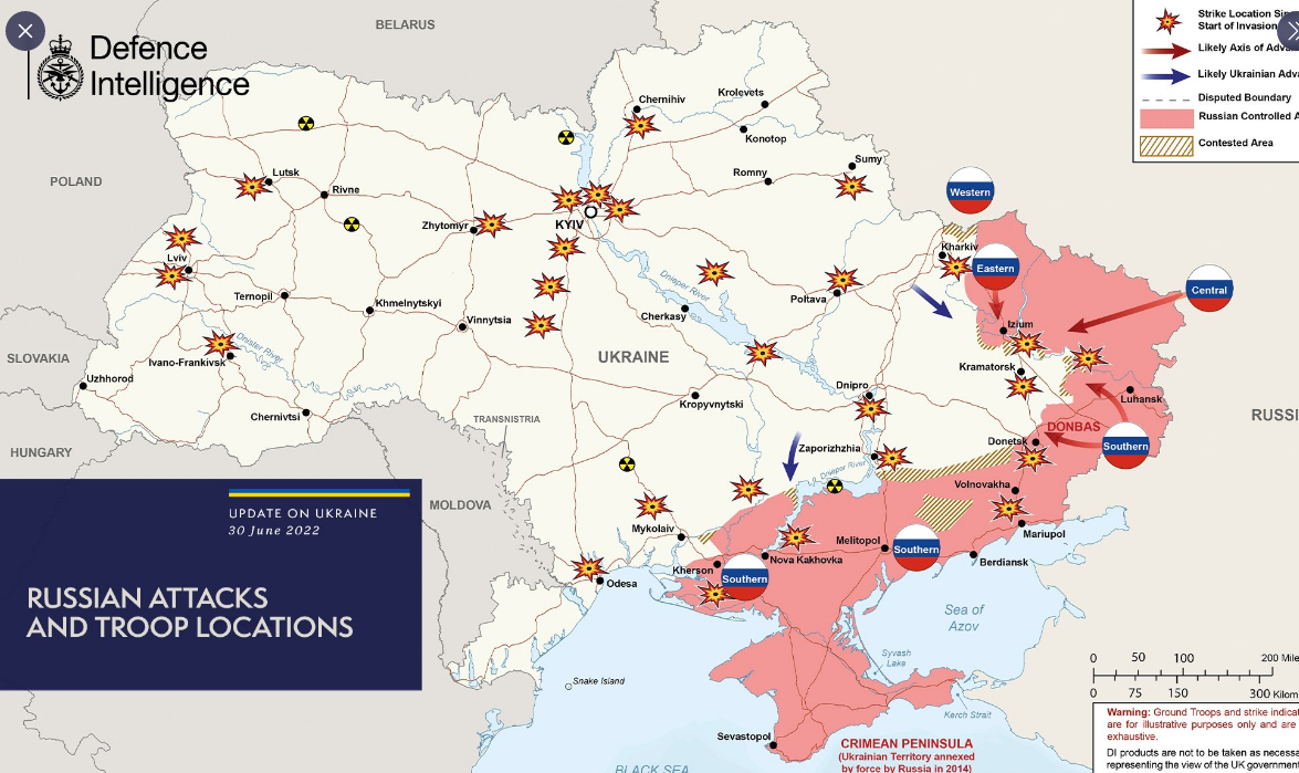 14:20 Карта бойових дій в Україні від Міноборони Британії