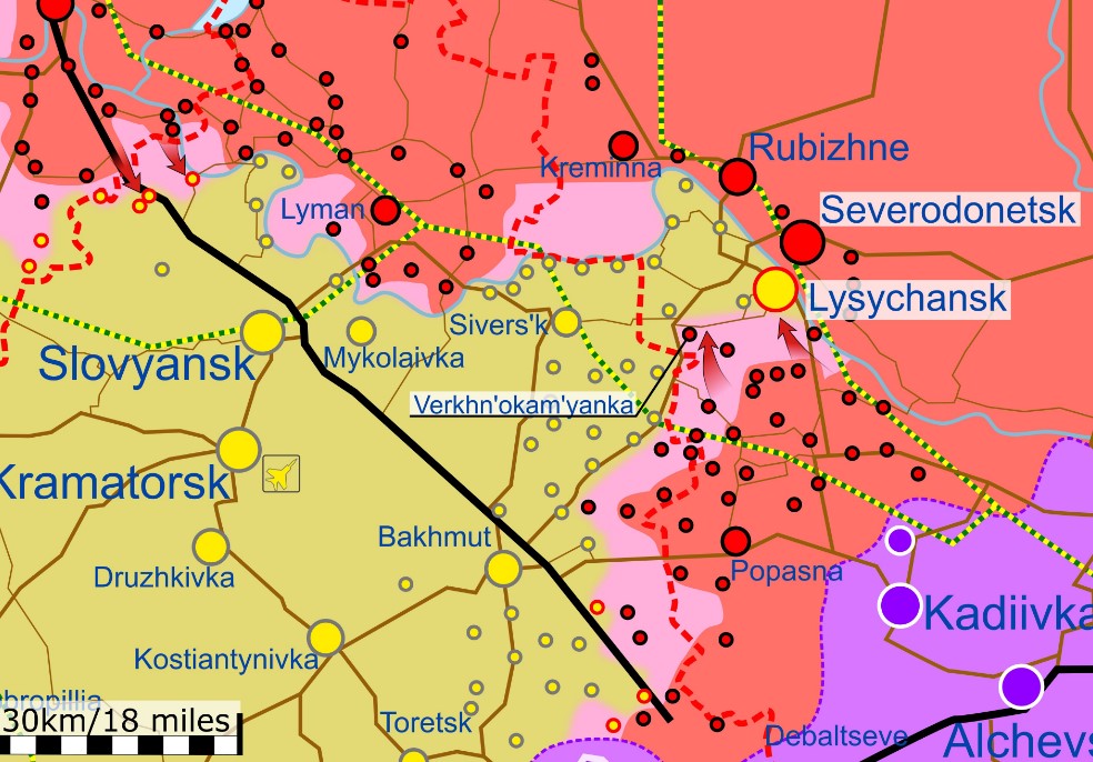 - російські війська є на околицях Лисичанська, але про вуличні бої ще не йдеться;