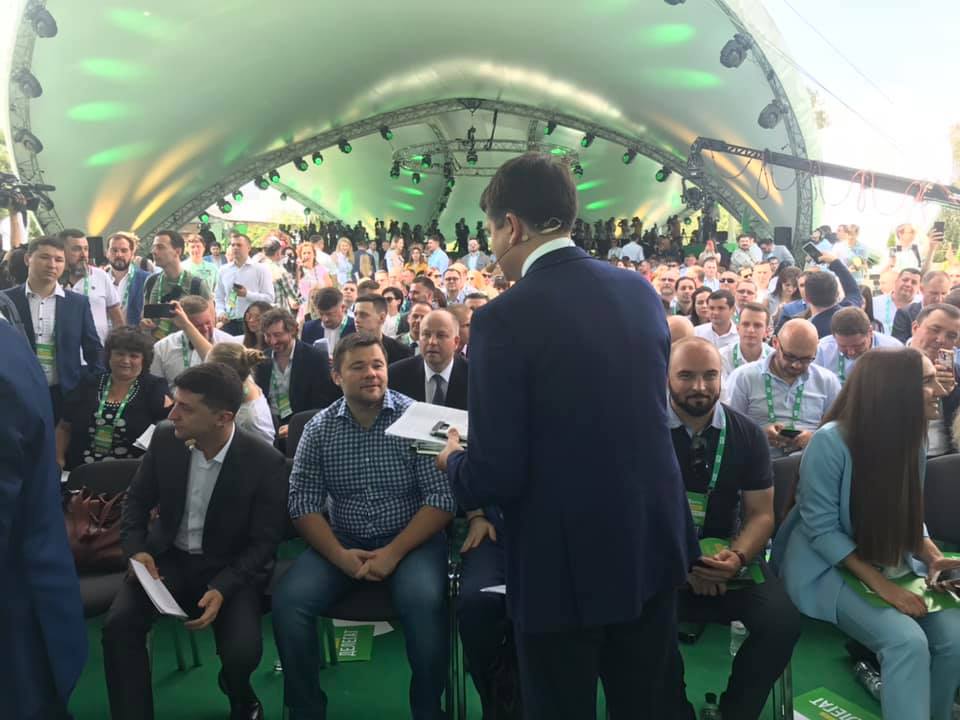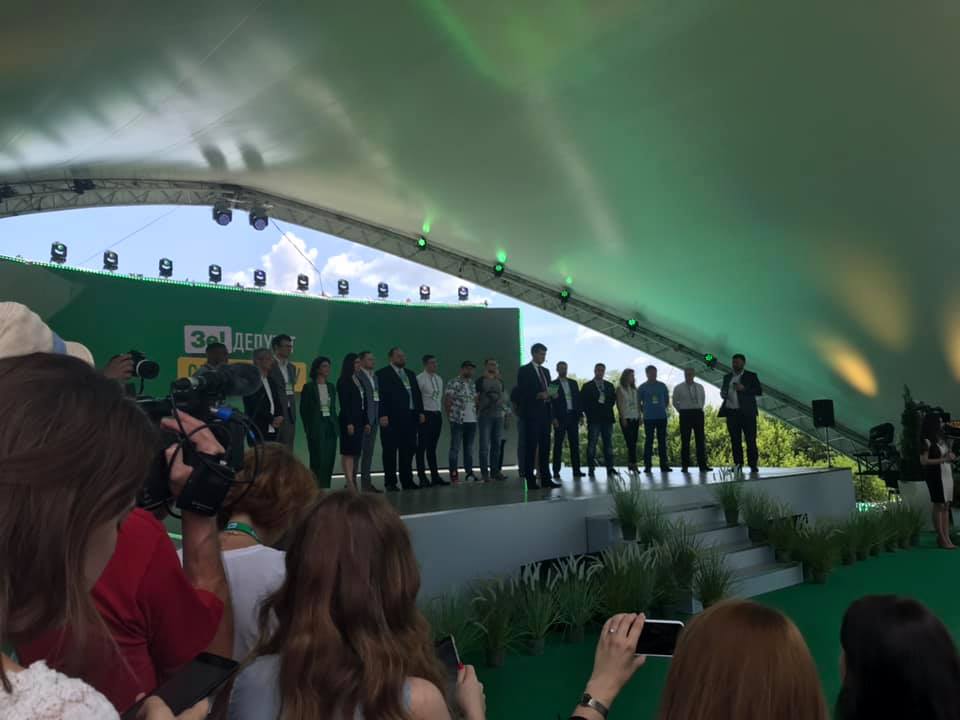 Серед присутніх на з'їзді партії президента України Володимира Зеленського, в ході якого озвучували кандидатів в народні депутати від партії "Слуга народу", були відомий ресторатор і телеведучий Микола Тищенко, телеведучий і пародист Олександр Скічко, журналіст Олександр Дубинський і інші.