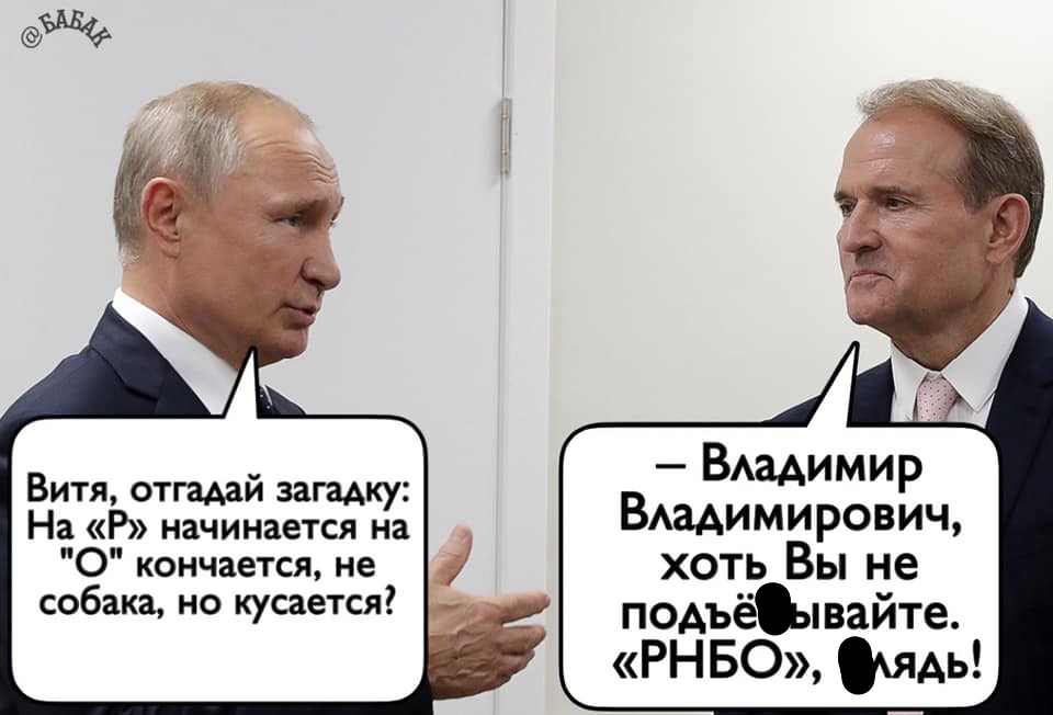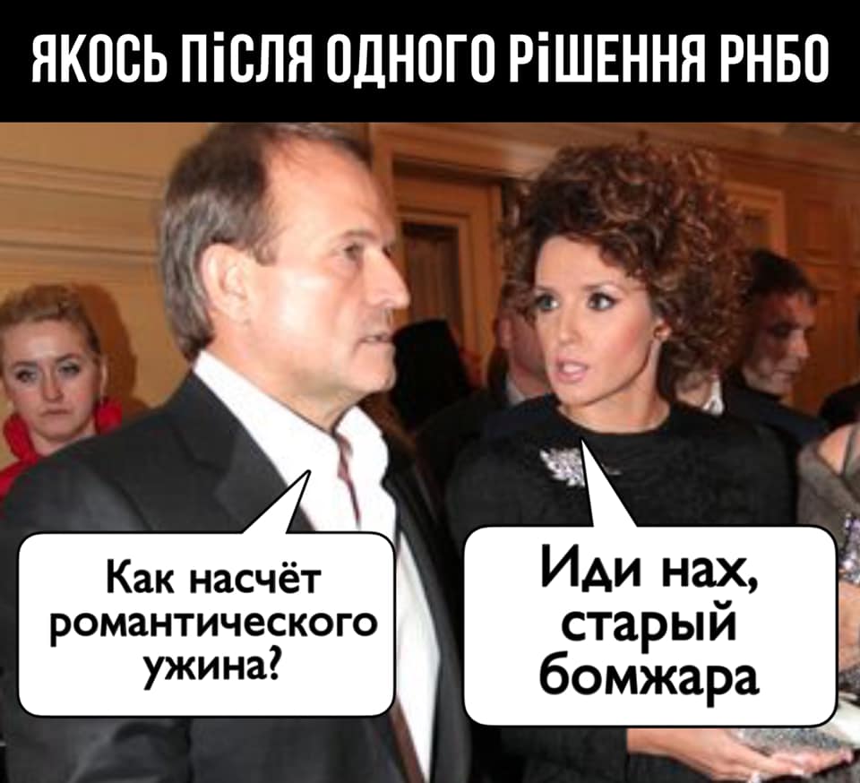 На засіданні Ради національної безпеки і оборони України 19 лютого було ухвалено рішення про введення санкцій відносно нардепа від "Опозиційної платформи - За життя" Віктора Медведчука і його дружини Оксани Марченко. У мережі з'явилися фотожаби на цю тему.