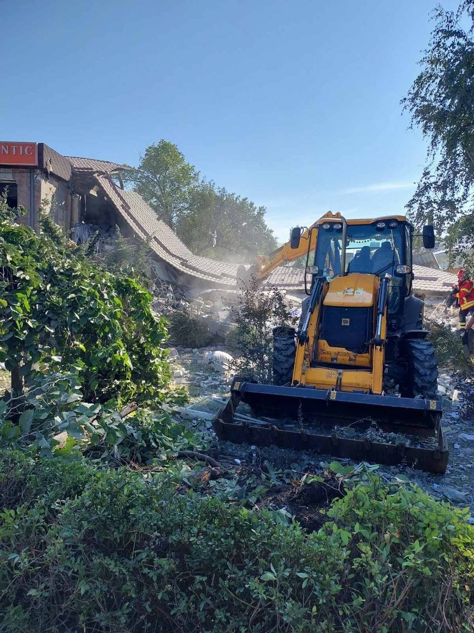 12:20 В результаті ранкового "прильоту" по Бахмуту на Донеччині частково зруйновано будівлю готелю. Госпіталізовано чоловіка. Виявлено тіло загиблої особи. Підтримується акустичний контакт із одним постраждалим.