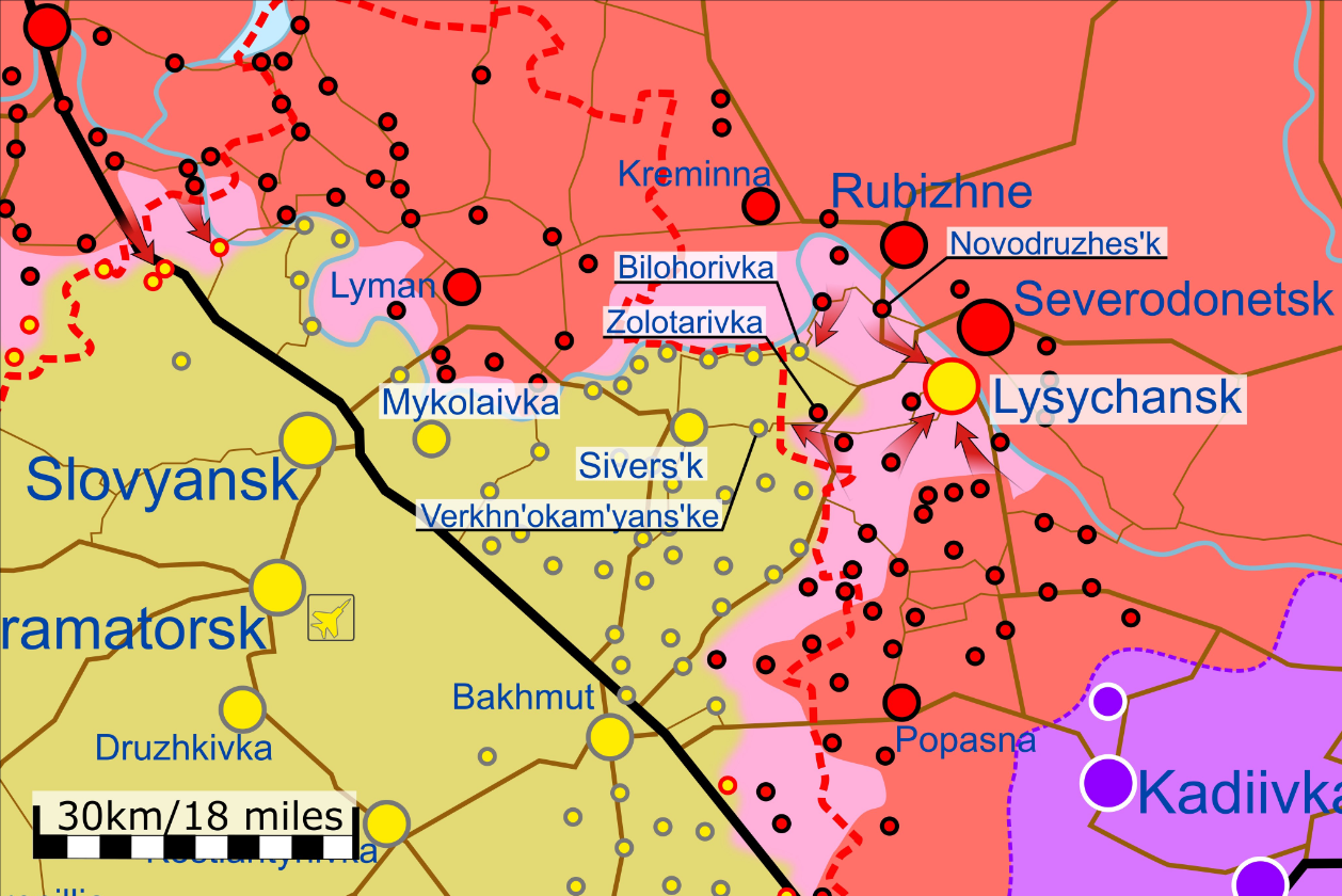19:30 Після важких боїв за Лисичанськ Сили оборони України були змушені відійти із займаних позицій і рубежів, повідомив Генштаб ЗСУ.