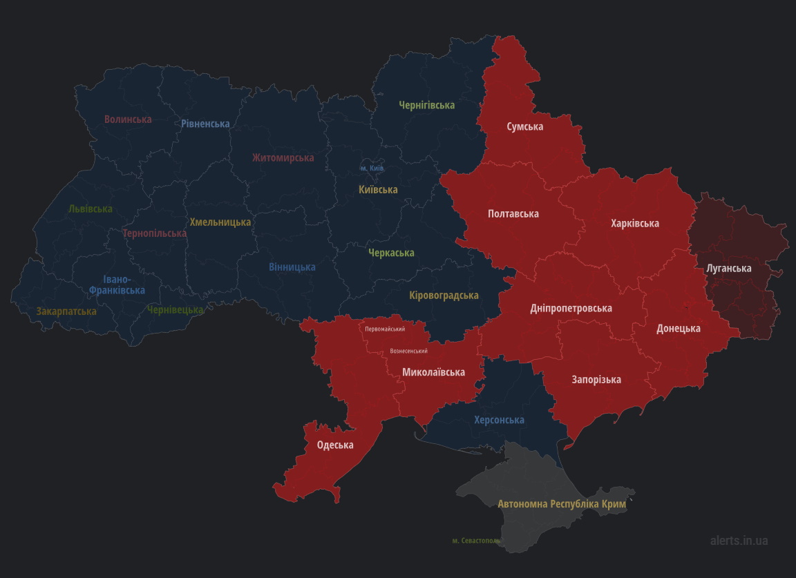 16:21 На Харківщині чути вибухи. Оголошено повітряну тривогу - те саме відбувається ще в ряді областей України.