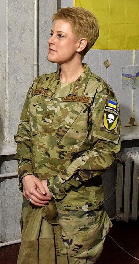 У п'ятницю, 9 квітня, на Донбасі в зоні проведення Операції об'єднаних сил побувала американська делегація на чолі з аташе з питань армії та оборони полковником Бріттані Стюарт. Вона приїхала у зону ООС із шевроном "Україна або смерть".
