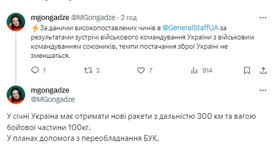 У січні наступного року Україна отримає від союзників нові ракети з дальністю 300 км.