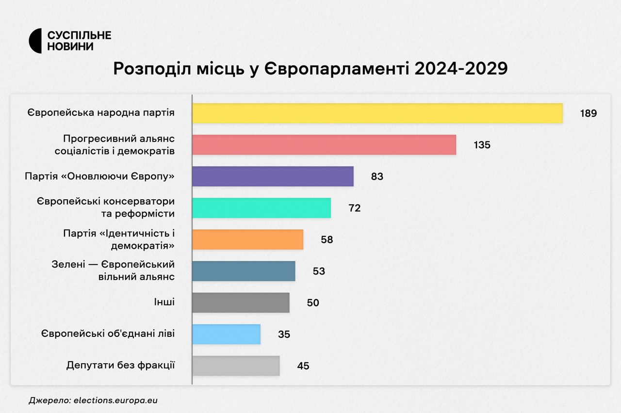 DW повідомляє, що перші прогнози, оприлюднені німецькими телеканалами ARD та ZDF, свідчили про наступне: проукраїнська Європейська народна партія (ЄНП) перемогла у виборах до Європарламенту, які мали завершитись у неділю, 9 червня. Відтак ЄНП матиме у десятому скликанні Європарламенту найбільшу фракцію – близько 180 зі 720 місць у новому скликанні парламенту.
