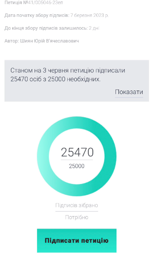 Про це автори петиції розповіли у своєму Twitter.