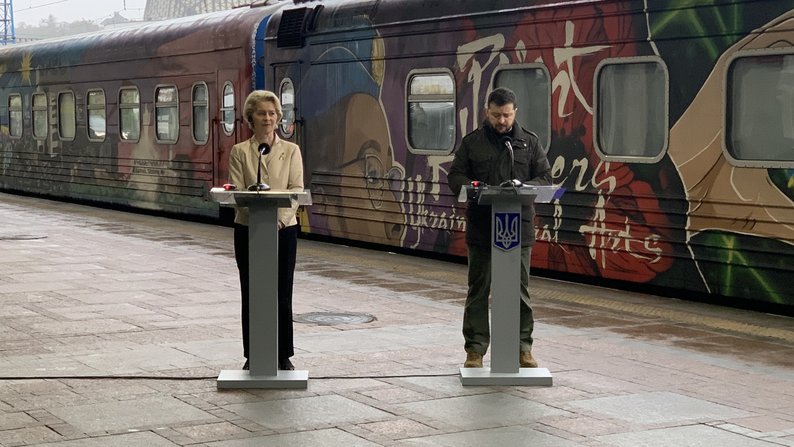 "Україна може пишатися своїми залізничниками. З самого початку агресивної війни ви працюєте безперервно у складних умовах. Ви допомагаєте своїм співвітчизникам знайти притулок до ЄС та повертатися додому, ви перевозите зерно та життєво важливі продукти з України по всьому світу. І я сама стала свідком цього , тому що вшосте приїжджаю до Києва потягом", - сказала фон дер Ляйєн.