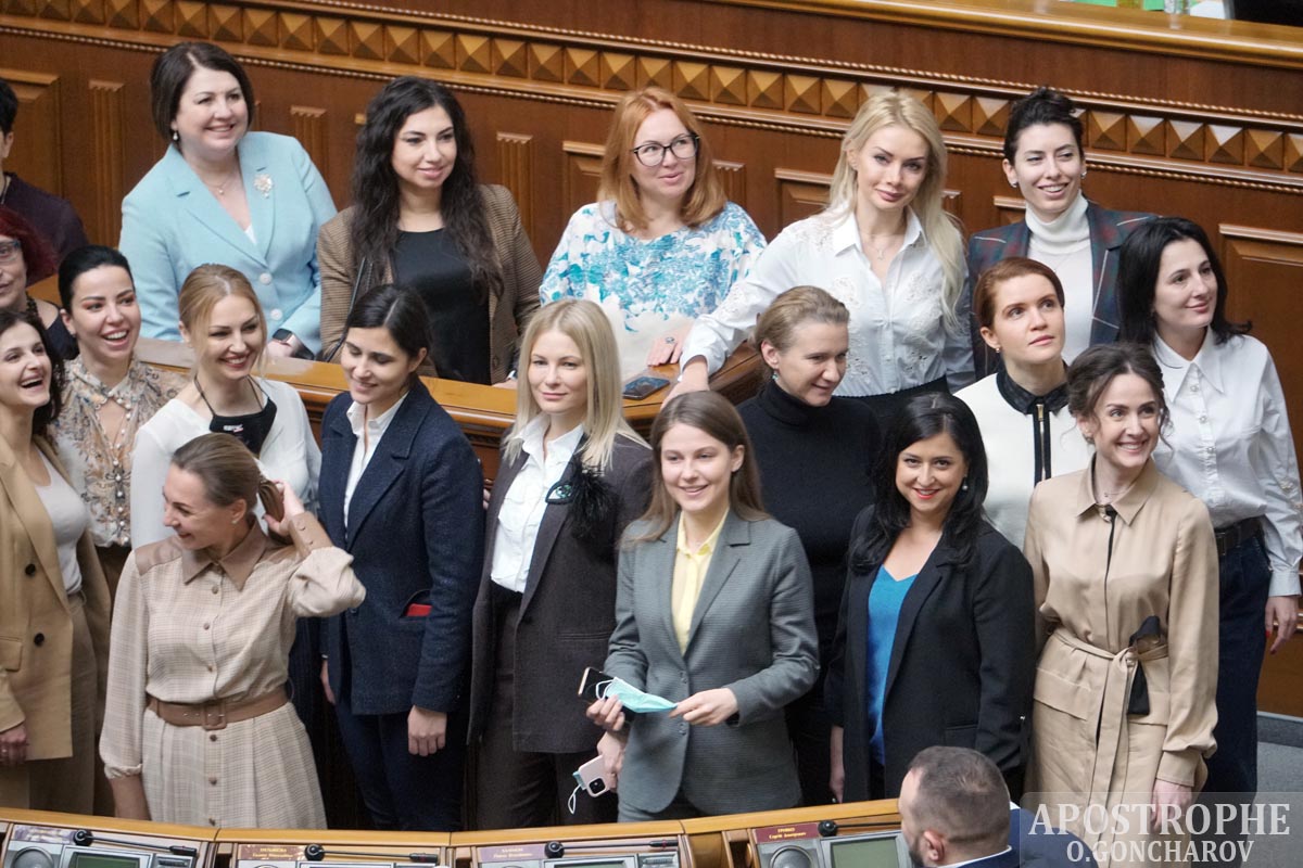 У четвер, 4 березня, жінки-нардепи зробили у Верховній Раді спільне фото до Міжнародного жіночого дня.