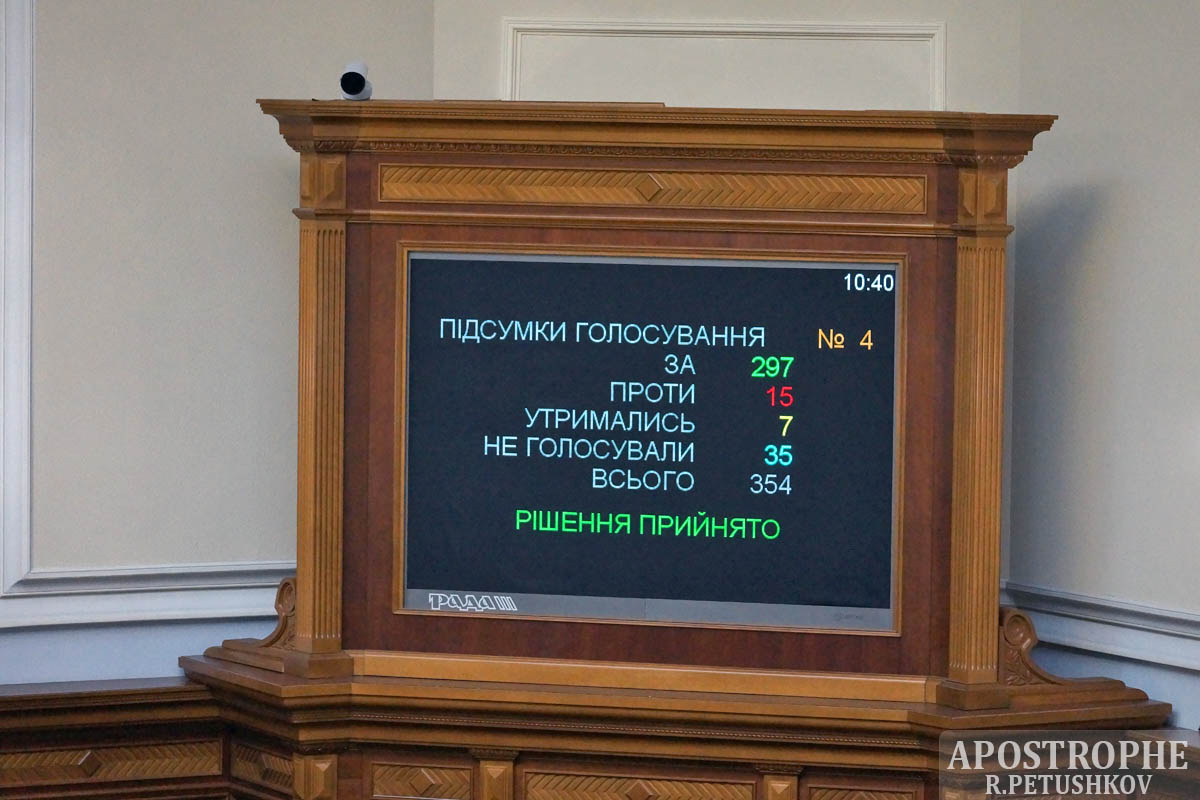 За законопроект №2051-1 проголосували 297 парламентаріїв, повідомляє кореспондент "Апострофа" з парламенту.
