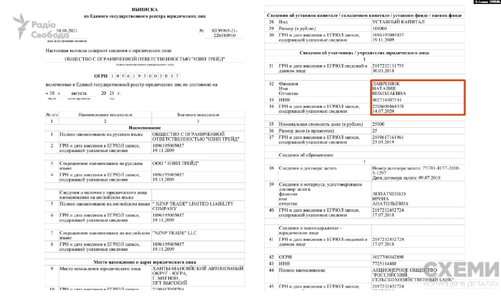 При цьому "Схеми" відзначили, що відповідні зміни в документах провели не у всіх державних структурах. Наприклад, в реєстрі юридичних осіб Росії вказаний ідентифікаційний номер і далі закріплений за Наталею Лавренюк.