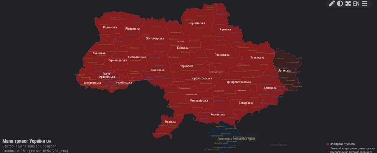 16:57 На всій території України лунають сигнали повітряної тривоги: