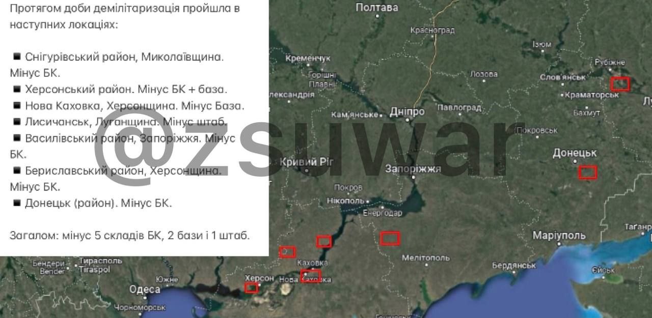 23:20 Протягом доби було демілітаризовано п'ять складів зброї, дві бази й один штаб росіян.