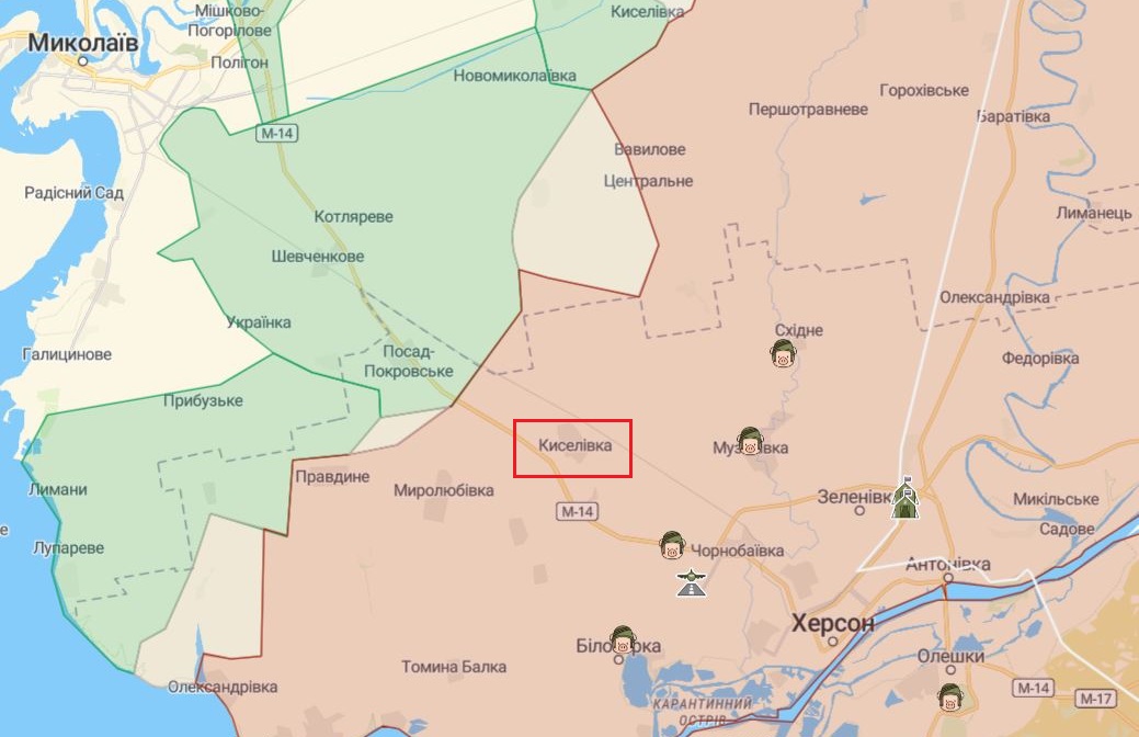 16:00 Оперативно важливе селище Киселівка на Херсонщині все ще знаходиться в "сірій зоні" За нього тривають бої, заявив голова Миколаївської ОВА Віталій Кім.