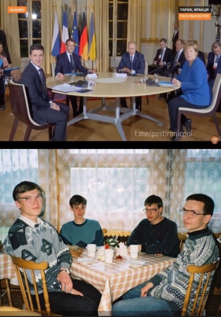 У мережі одразу ж висміяли цей знімок яскравою фотожабою, на якій світових лідерів порівняли з підлітками 90-х, по обличчях і зовнішності яких можна розгледіти любителів точних наук.