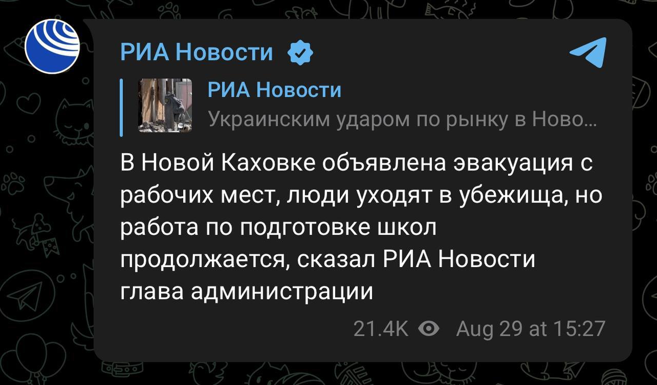 14:44 РосЗМІ пишуть про евакуацію з Нової Каховки.