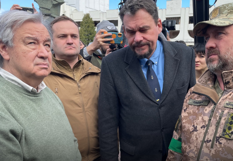 Генсек ООН після візиту 26 квітня в РФ прибув в Україну. Він мав на меті провести низку зустрічей з українськими високопосадовцями.