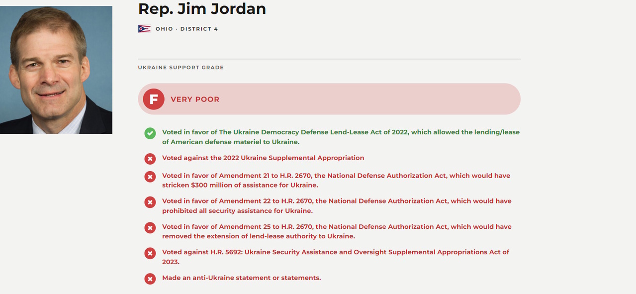 Він є вкрай консервативним представником Республіканської партії: крім того, він виступає проти надання військової допомоги Україні та відзначився антиукраїнськими заявами. У зв'язку з цим ініціатива "Республіканці за Україну" поставила йому оцінку F ("дуже погано").