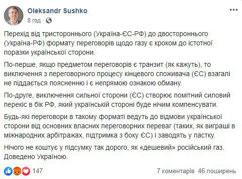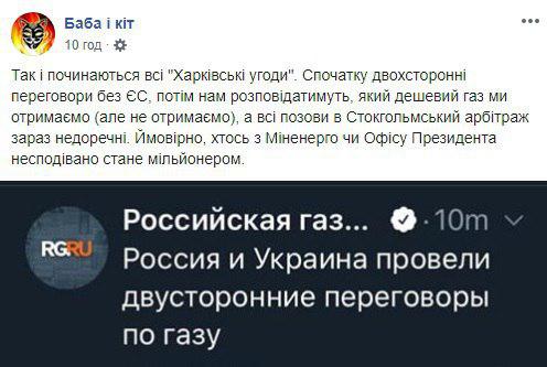 У мережі висловили обурення двосторонніми переговорами між Україною і Росією з газового питання.