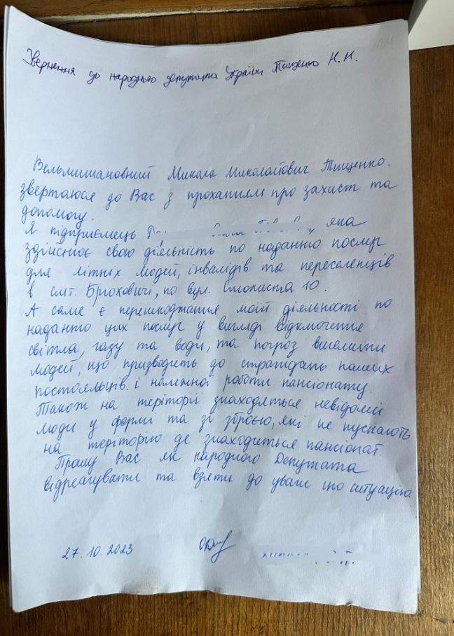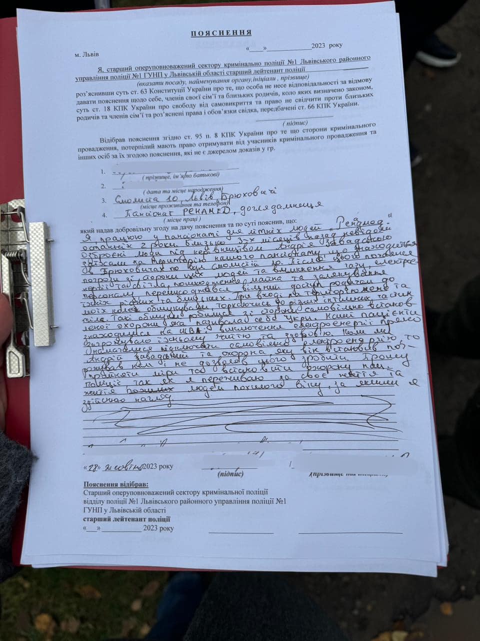 В іншій публікації народний депутат оприлюднив світлини документів з поясненями від працівниць пансіонату, які вони надали правоохоронцям. Окремо Тищенко пообіцяв незабаром опублікувати наявний на рейдерів матеріал та попередив, що вони опиняться за ґратами.