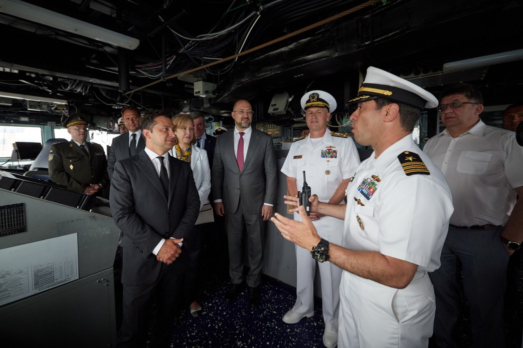 Так, глава держави, під час візиту до Одеси, відвідав есмінець "Росс" Військо-морських сил США, який бере участь у міжнародних військово-морських навчаннях Sea Breeze-2021. Він зазначив, що символично, що День ВМС України та День Незалежності США святкують в один день.