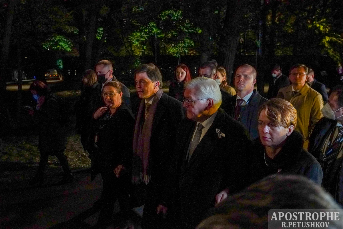 У середу, 6 жовтня, президент України Володимир Зеленський, федеральний президент Німеччини Франк-Вальтер Штайнмаєр і президент Ізраїлю Іцхак Герцог взяли участь у відкритті меморіального об'єкту "Кришталева стіна плачу" в урочищі Бабин Яр у Києві.