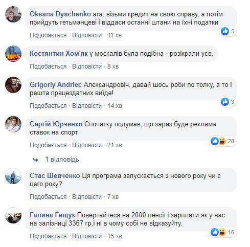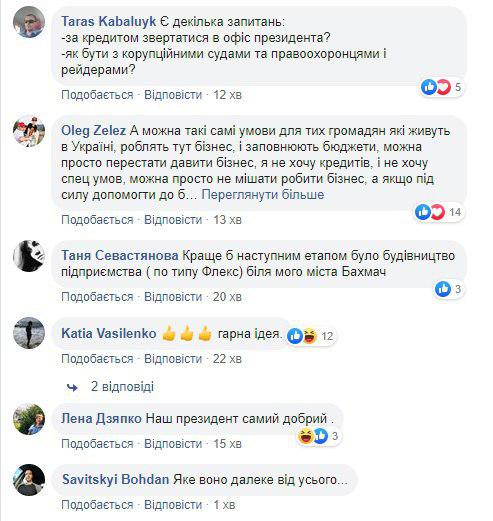 "Є кілька питань: за кредитом звертатися в офіс президента? Як бути з корупційними судами, правоохоронцями та рейдерами?" - запитують в соцмережах.
