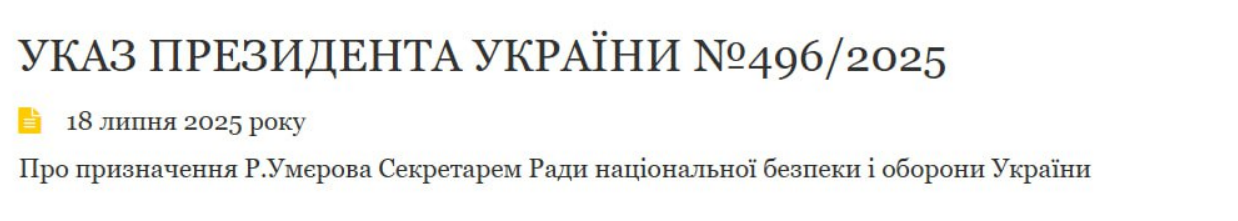 "Призначити Умєрова Рустема Енверовича секретарем Ради національної безпеки і оборони України".