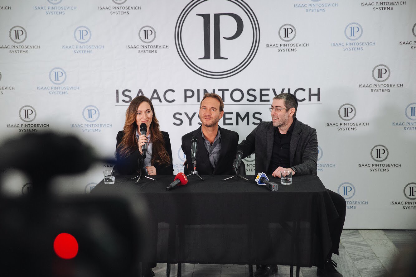 23 лютого Нік Вуйчич приїхав до України за запрошенням Іцхака Пінтосевича для виступу на тренінгу "Переможець лінощів. Життя без обмежень". Він провів у столиці майже два дні, та встиг багато попрацювати.
