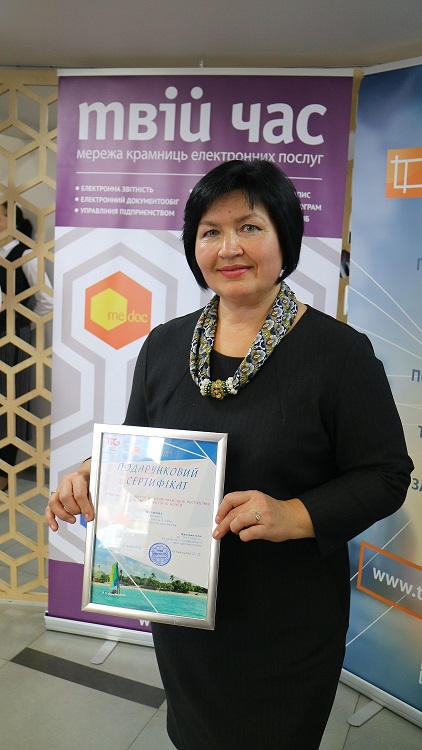 Валентина поділилась досвідом ефективної роботи: "Головний бухгалтер не тільки організовує бухгалтерський облік, а й дбає, щоб підприємство було рентабельним. Тому коли я організовувала бухгалтерський облік, виходила з того, щоб найменшою кількістю працівників зробити максимум роботи – тобто продуктивність праці поставила на перше місце. І тому більшість процесів у нас автоматизована. Тобто починаючи від прийому платежів і закінчуючи документообігом – у нас усе виконує програма. Людина (бухгалтер чи інший працівник) тільки аналізує. Я агітую багатьох своїх контрагентів обмінюватися документами в електронному вигляді. Я вважаю, що це є зручним для всіх".