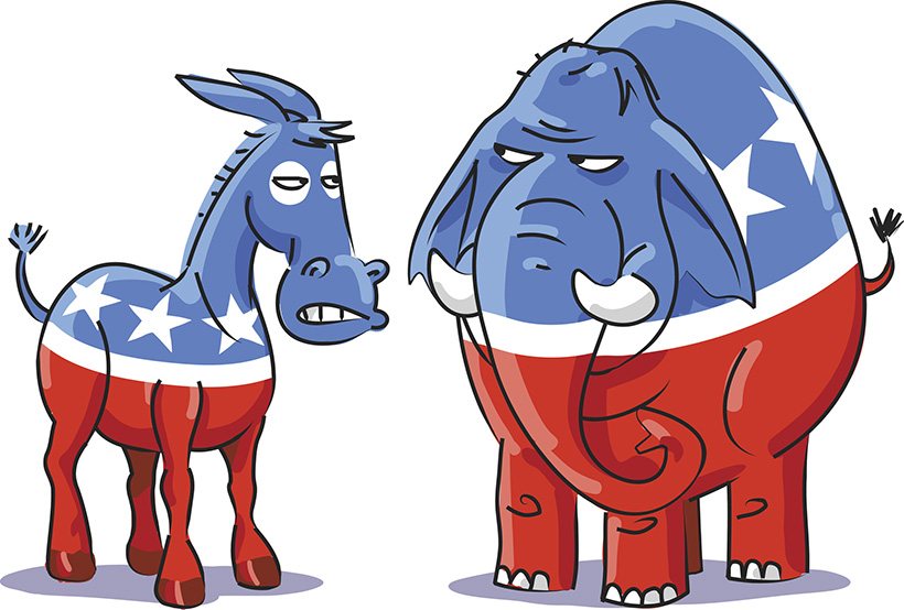 Символ двух партий - "демократический" осел против "республиканского" слона