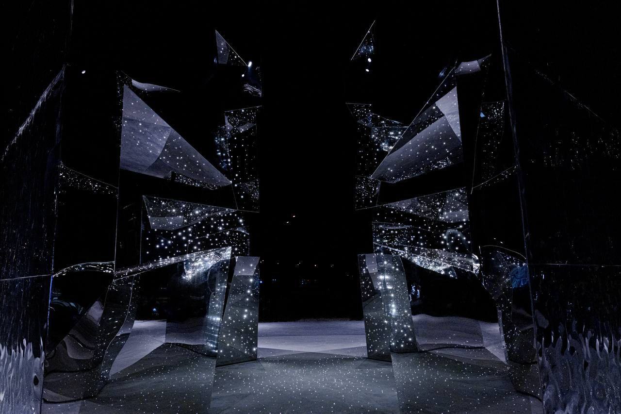 А еще предложение Блаженнейшего заключалось в том, чтобы мы могли окунуться внутрь этого креста, почувствовать себя частью этих сопереживаний. А огоньки постоянно тускнеющие и разгорающиеся на композиции символизируют души погибших и живущих. Это такая апелляция к миллионам душ, которые сейчас в этом участвуют.