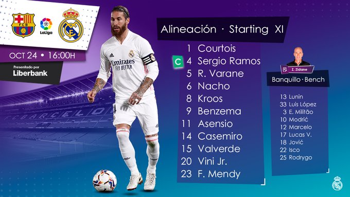 "Реал": Куртуа, Рамос, Менди, Варан, Начо (Васкес, 43), Вальверде (Модрич, 69), Каземиро, Винисиус Жуниор, Кроос, Асенсио (Родриго, 81), Бензема.